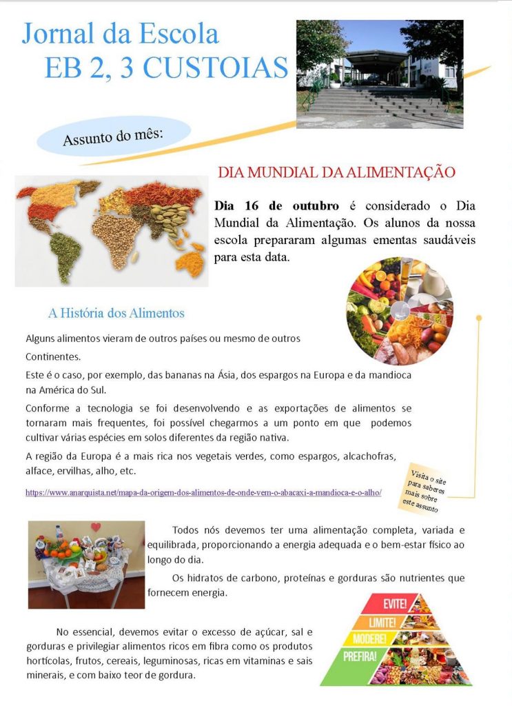 É com um enorme orgulho que lançamos hoje a primeira edição de um jornal de Escola, iniciativa das alunas Francisca Faneco e Luísa Barbosa, do 6 º H, da Escola Básica de Custoias.