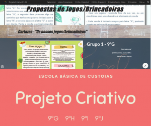 Atualmente os alunos encontram-se a construir as diferentes propostas de jogos/brincadeiras para os marcos de paragem ao longo do percurso. Os nomes das propostas de Jogos/brincadeiras são bem interessantes: “Isso Lembra-me”, “Matta às emoções negativas”, “Caça à água”, “Toca a Encher”, “Sempre abraçados, Juntos”, “Berlindes com pedras”, “Alimentos criativos”, “O Património tem…”, “Qualimento?”, “1,2,3…”, “1,2,3 dos Alimentos”, “Ministério do Património”, “Investigação Animalitica”, “Ser um alimento?”, “Trajetória Certa”, “Desfolhagem”, “Roda dos Direitos”.