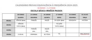 calendário das Provas Finais e de Equivalência à Frequência